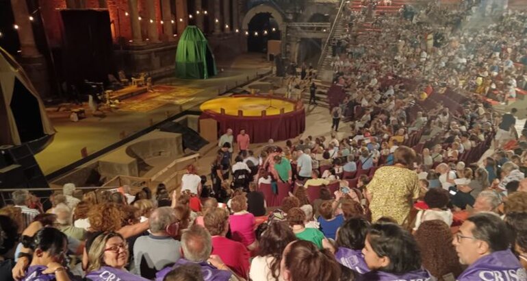 Participantes del Programa CRISOL Mérida (Programa de Crecimiento e Inserción Socio-laboral de personas en situación o riesgo de exclusión social 2023-2026) asistieron este pasado jueves, 21 de agosto, a la representación de la obra 'Los Hermanos', incluida en la programación del Festival de Mérida, en el Teatro Romano.