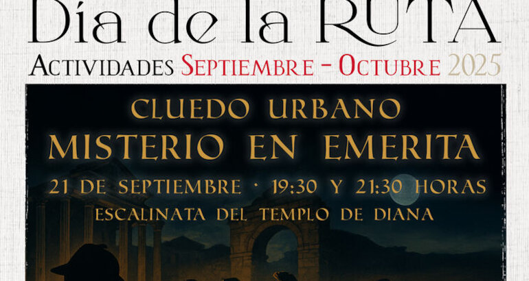 En concreto, esta cita, que se celebrará el próximo 21 de septiembre, con motivo de los actos conmemorativos del Día de la Ruta de la Plata, se inspira en el popular juego de mesa 'Cluedo'. Se trata de un espectáculo que ofrece una aventura participativa para todos los públicos, donde 80 personas se convierten en investigadores en plena Lusitania romana.