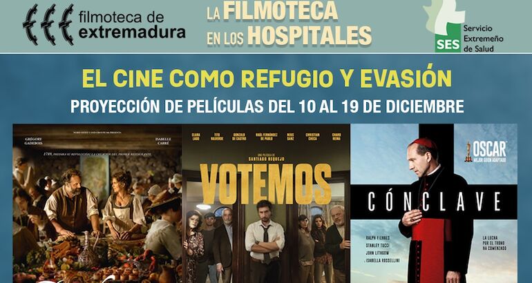 En el Hospital de Zafra el 12 de diciembre y en el Hospital de Coria el 19 de diciembre se proyectará 'Por todo lo alto' de Emmanuel Courcol, mientras que 'Votemos', de Santiago Requejo, se podrá ver en el Hospital Don Benito-Villanueva el 15 de diciembre y en el Hospital San Pedro de Alcántara de Cáceres el 17 de diciembre.