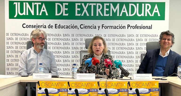 La consejera de Educación, Ciencia y Formación Profesional en funciones, María Mercedes Vaquera, ha presentado la nueva programación de la Orquesta Sinfónica de los Conservatorios de Almendralejo y Mérida (OSCAM), que se compone de seis conciertos en Extremadura y uno en Portugal para esta temporada 2025-2026.